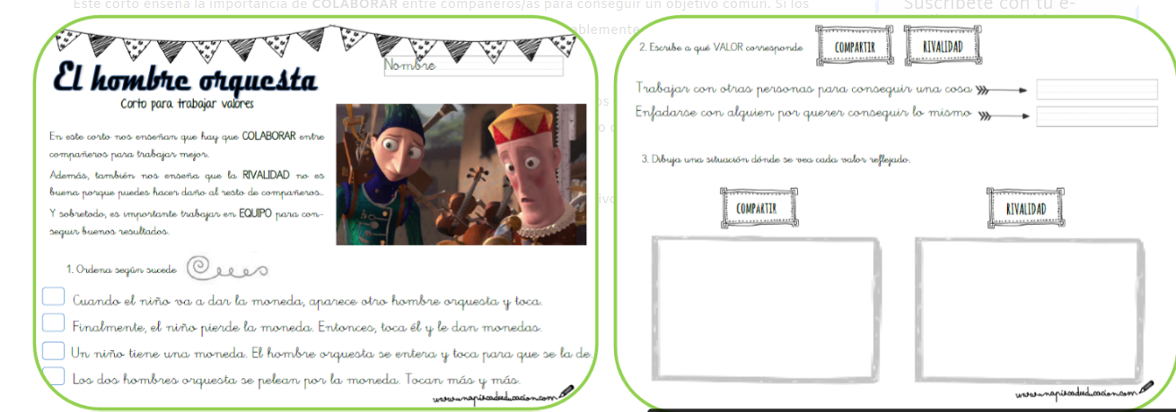 Como recordaréis la semana pasada vimos un corto relacionado con el compañerismo. Es momento de trabajar sobre ello y plasmarlo en el papel.