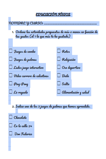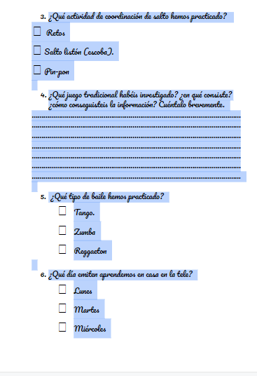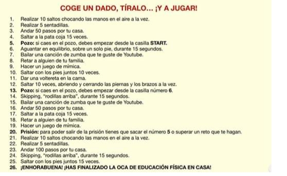 Las actividades requerirán de poco espacio para su desarrollo, adecuandonos a las características que puedan tener todos los alumnos en sus casas, favoreciendo la participación de todos.